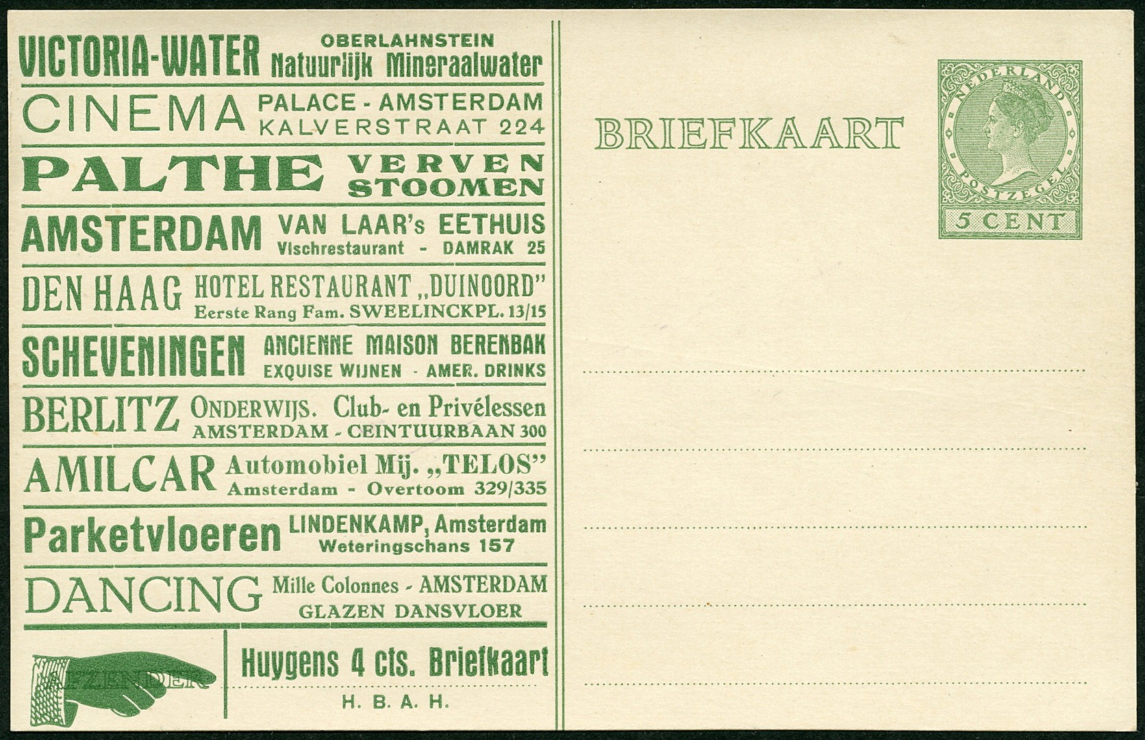 Particulier bedrukte bk. Huygens, RBK10. Ongebruikte prachtkaart. € 100