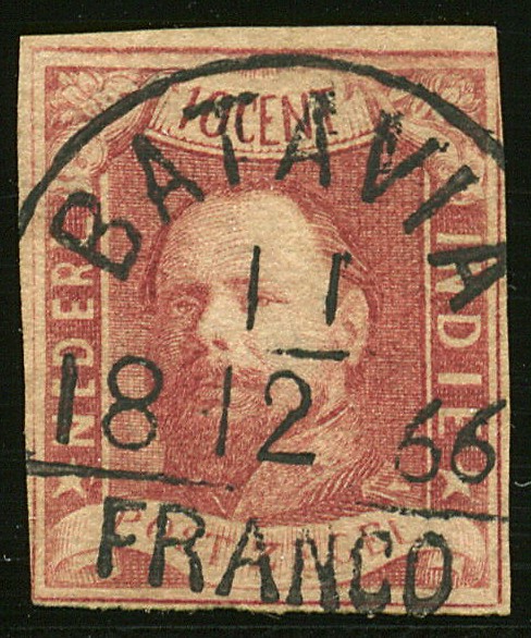 Halfrond-franco BATAVIA op nr. 1. Vrijwel prachtex. met superbe afst.