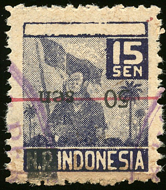 0177fko, Emergency issue for Atjeh 50 sen on 15 sen with variety 'inverted overprint'. € 250