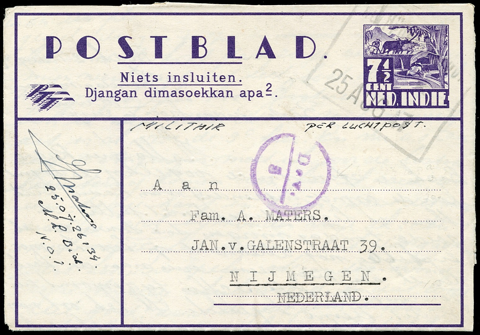 Pb. G5 van BIAK 25-8-1947 (stempel Bu. type NO16) naar Nijmegen, met deviezencensuur