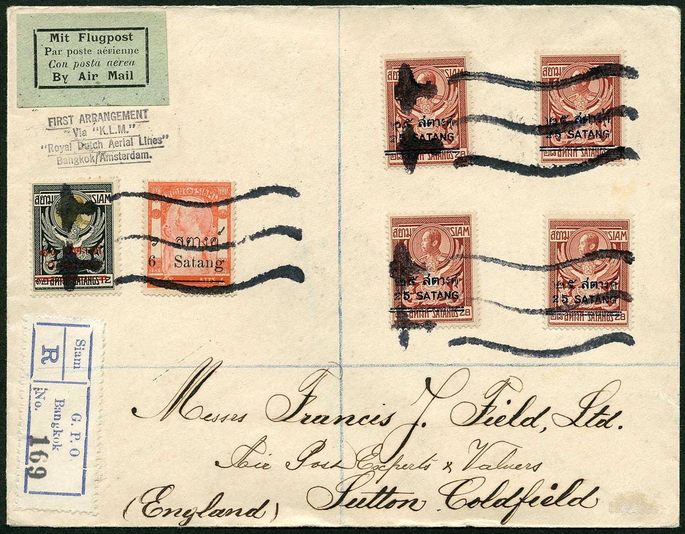 Bandoeng-Bangkok-Amsterdam 17-10-1930, 1e terugvlucht veertiendaagse dienst. Env. van Bangkok 18-10 via Birmingham 26-10 naar Sutton 27-10. VH.B.51c (slechts 78 stukken gevlogen). € 200