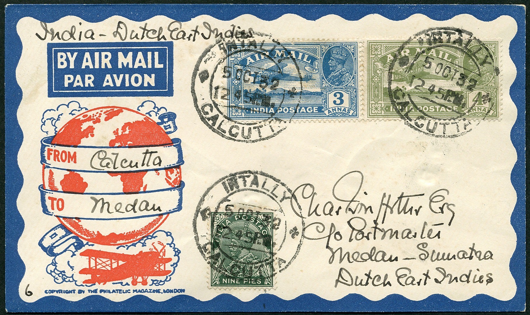 Amsterdam-Calcutta-Bandoeng 29-9-1932. Env. van Calcutta 5-10 naar Medan 7-10. VH.B.72b. € 125