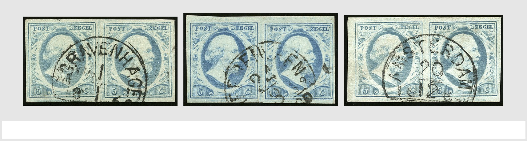 EMISSIE 1852. 5 Cent lichtblauw plaat III, 6x los, 14 paren, 1 strip van drie, alle gepositioneerd en van goede kwaliteit