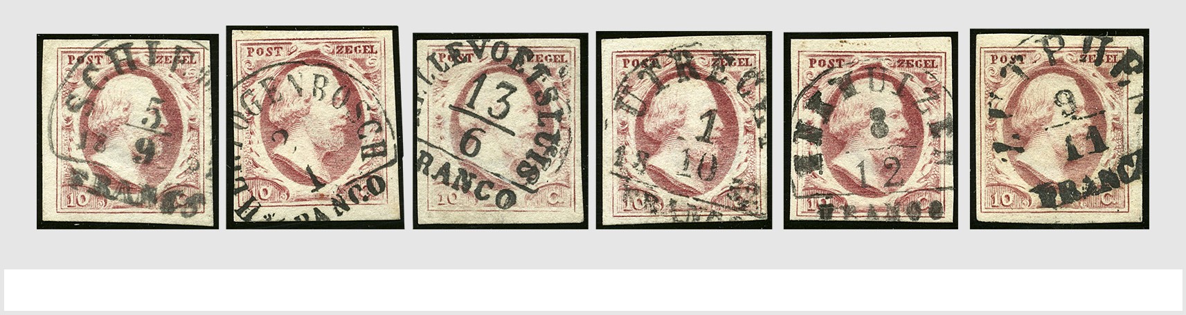 EMISSIE 1852. 10 Cent plaat I, 47x los en 1 paar, merendeels gepositioneerd en alle prachtex.