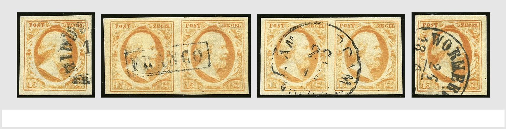 EMISSIE 1852. 15 Cent, 12x los en 3 paren, alle prachtex. en gepositioneerd (uit 1e kwadrant)