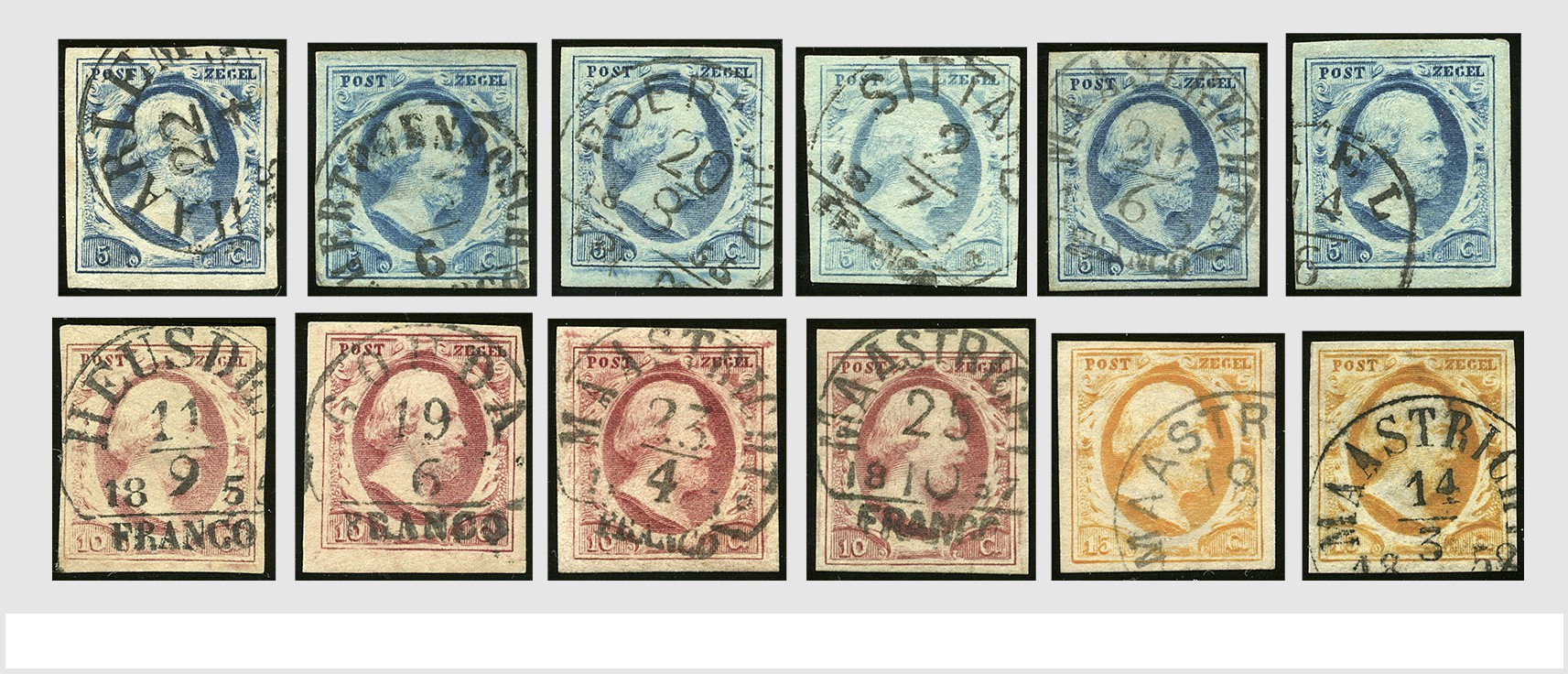 EMISSIE 1852 EN 1864 op 5 insteekkaarten met de nrs. 1(55), 2(66), 3(5), 4(65), 5(74) en 6(8). Mooie koop.