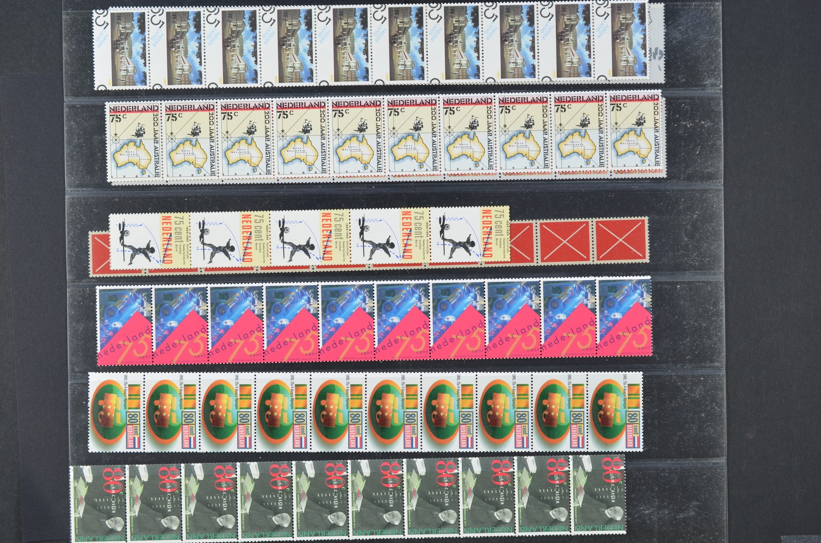Rolzegels postfris in strippen van 10 waarbij enkele aardige nummers en teststrip Andreaskruis in rood.