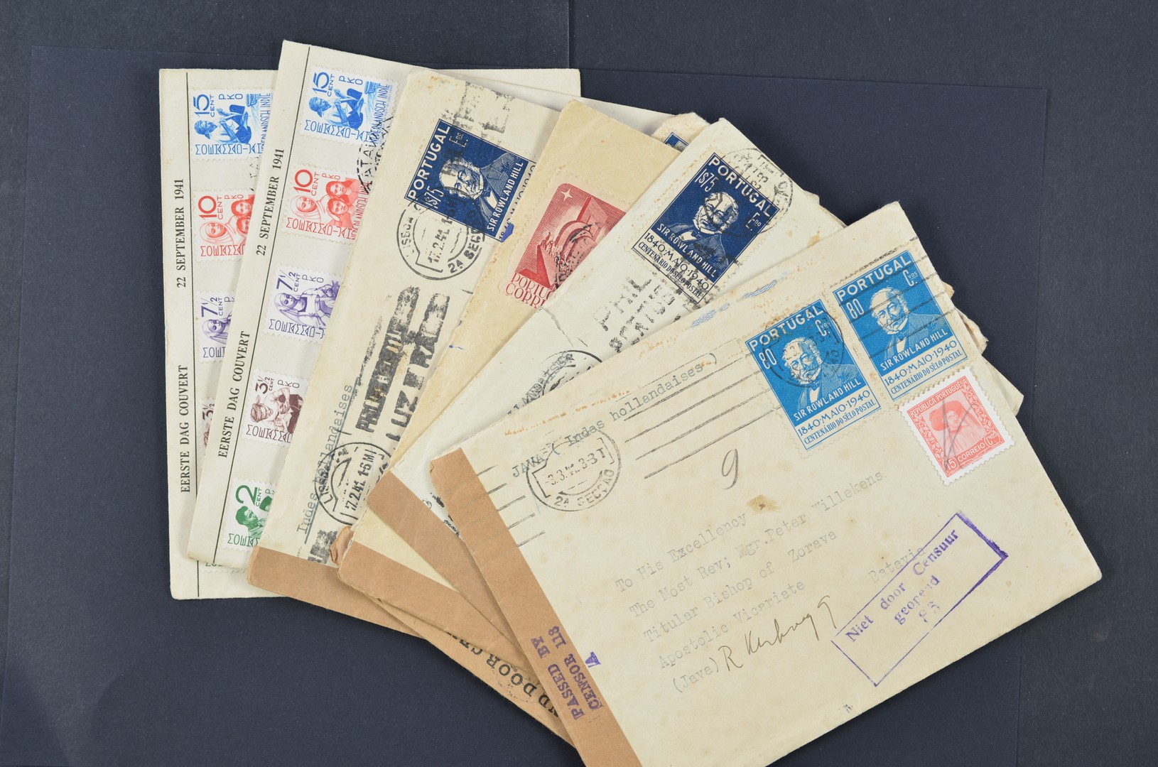 NED.- INDIË. Vier gecensureerde enveloppen uit Portugal en 1 uit Thailand, alle 1941, naar kerkelijke hoogwaardigheidsbekleders te Batavia. Tevens twee zelfde FDC's Moehammadijah 1941