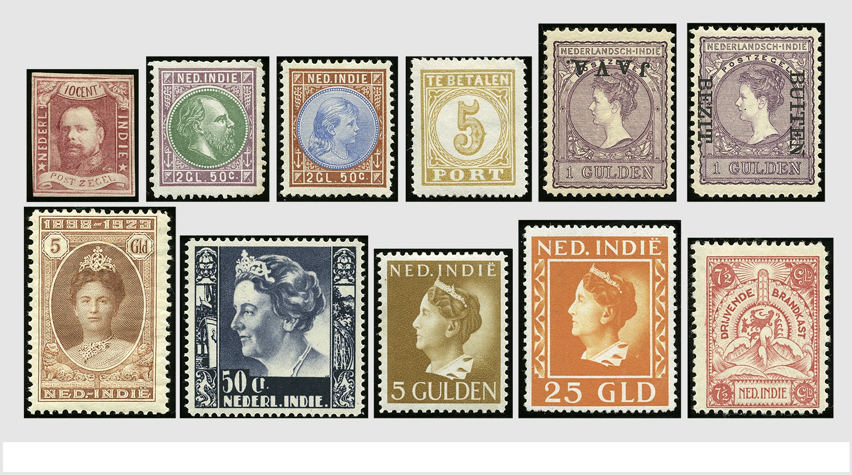 NEDERLANDS INDIË 1864-1950, vrijwel complete ongebruikte verzameling op albumbladen incl. Luchtpost, Port en Brandkast. Tevens kopstaande opdrukken Java, Bezit Buiten etc. Prachtkoop met zeer hoge cat.wrd. Zie foto-collage.
