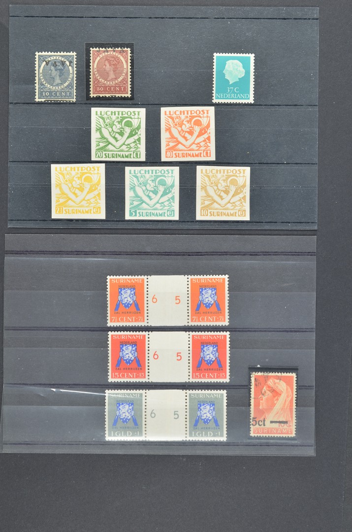 Partijtje o/*/** wb. Ned.-Indië 290a/92a, Cur. 57/67 **, 100 en 183 met verschoven opdrukken, Sur. LP15/19 ongetand, LP24/26 in blok van 4, LP24f en Port 15/16