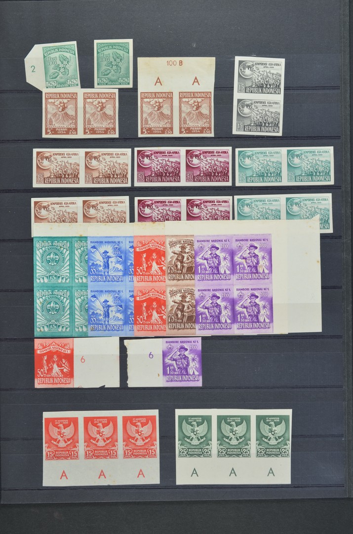 INDONESIË, ongetande, ongegomde zegels en series uit het Kolff-archief tussen 1950 en 1957, totaal ruim 100 ex. w.o. paren en blokken, in wat gevarieerde kwaliteit