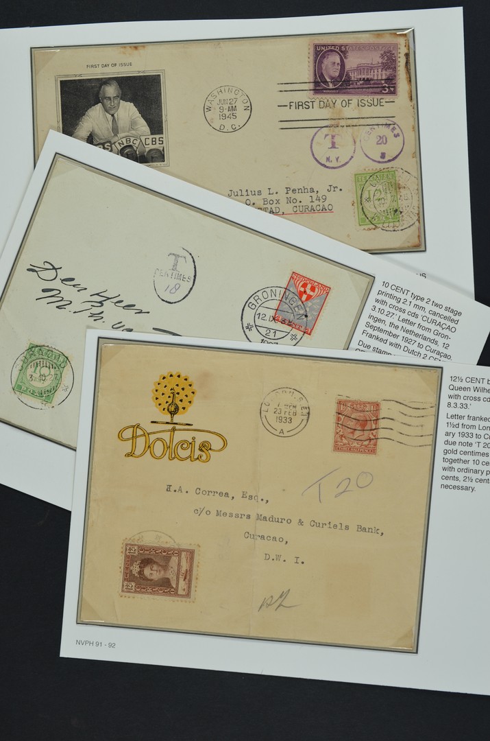 CURAÇAO, Posthistorie, 6 met port belaste poststukken tussen 1927 en 1945, alle naar Curaçao verzonden, 3x met portzegel en 3x met frankeerzegel beport. Leuk kavel!