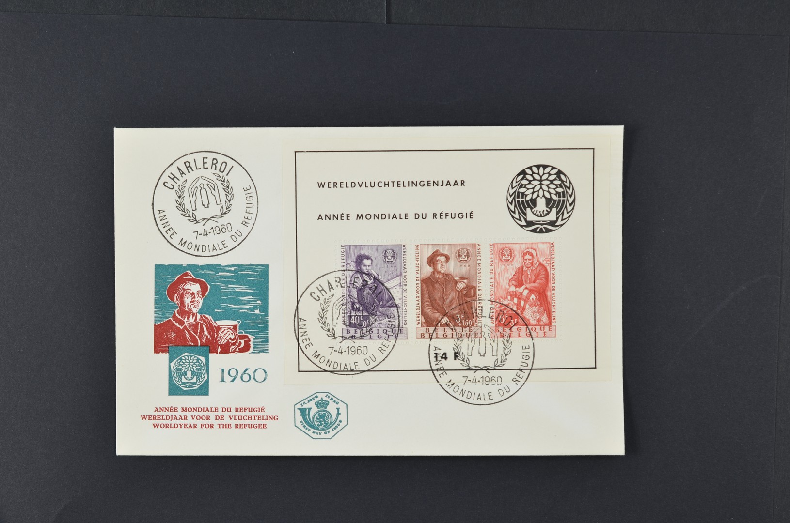 BELGIË, vluchtelingenblok 1960 op FDC (15x) met verschillende afstempelingen.