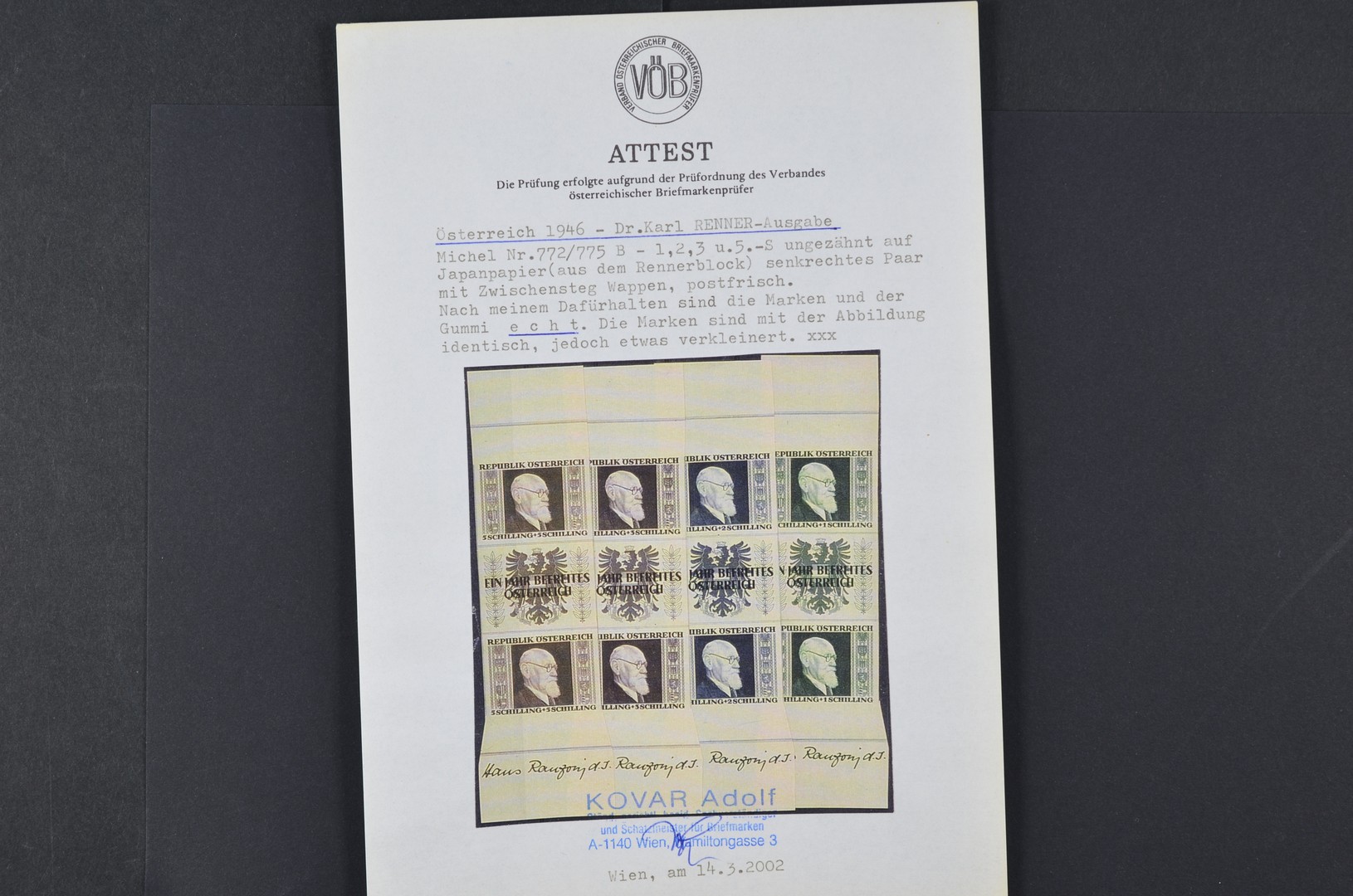 OOSTENRIJK Mi. 772/75B, Renner-serie ongetand in postfrisse verticale paren met tussenstroken (uit de Rennerblokken), certificaat Kovar(2002)