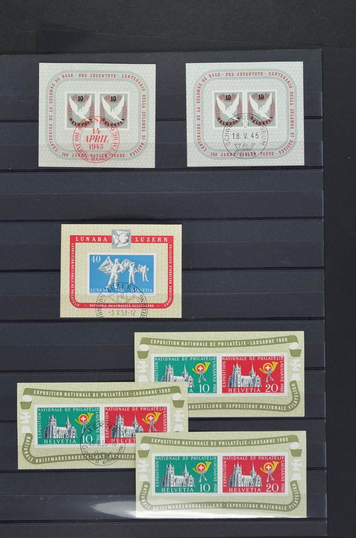 ZWITSERLAND 1945-1955 blokken o/** op insteekblad wb. B12(2x), B14 en B15(3x)
