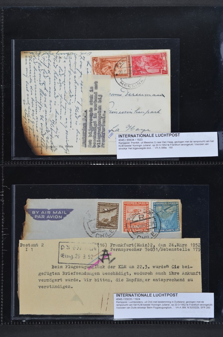 INTERNATIONALE LUCHTPOST, Ramppost, een 5-tal poststukken met div. bestemmingen.