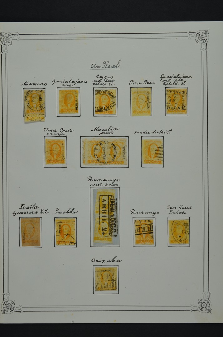 MEXICO prachtcollectie emissies 1856 en 1861 op plaats en kleur verzameld waarbij ook 3 brieven.
