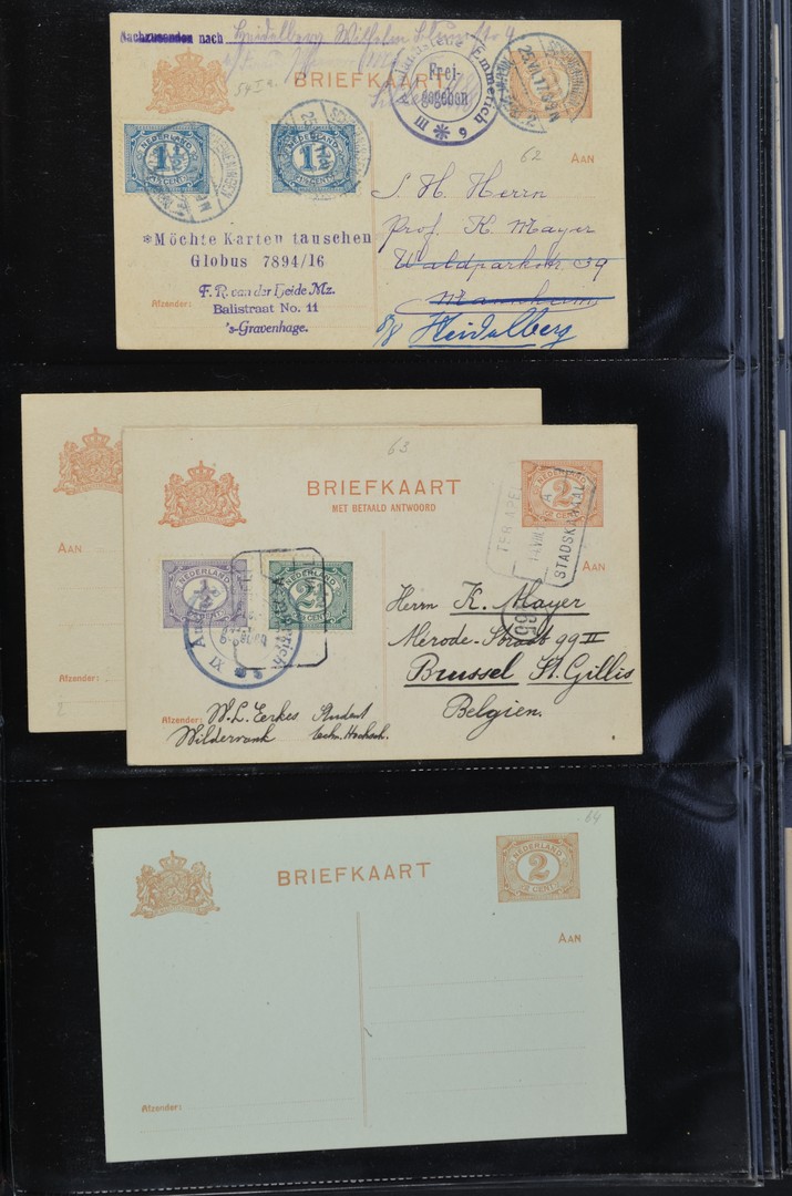 POSTHISTORIE. Verzameling van ca. 525 ongebruikte en verzonden postwaardestukken, vnl. postbladen, brief- en verhuiskaarten, w.o. met betere stempels van kleine kantoren (o.a. naam-, spoorwegtraject-, alsmede mooi klein- en grootrond), in 2 albums