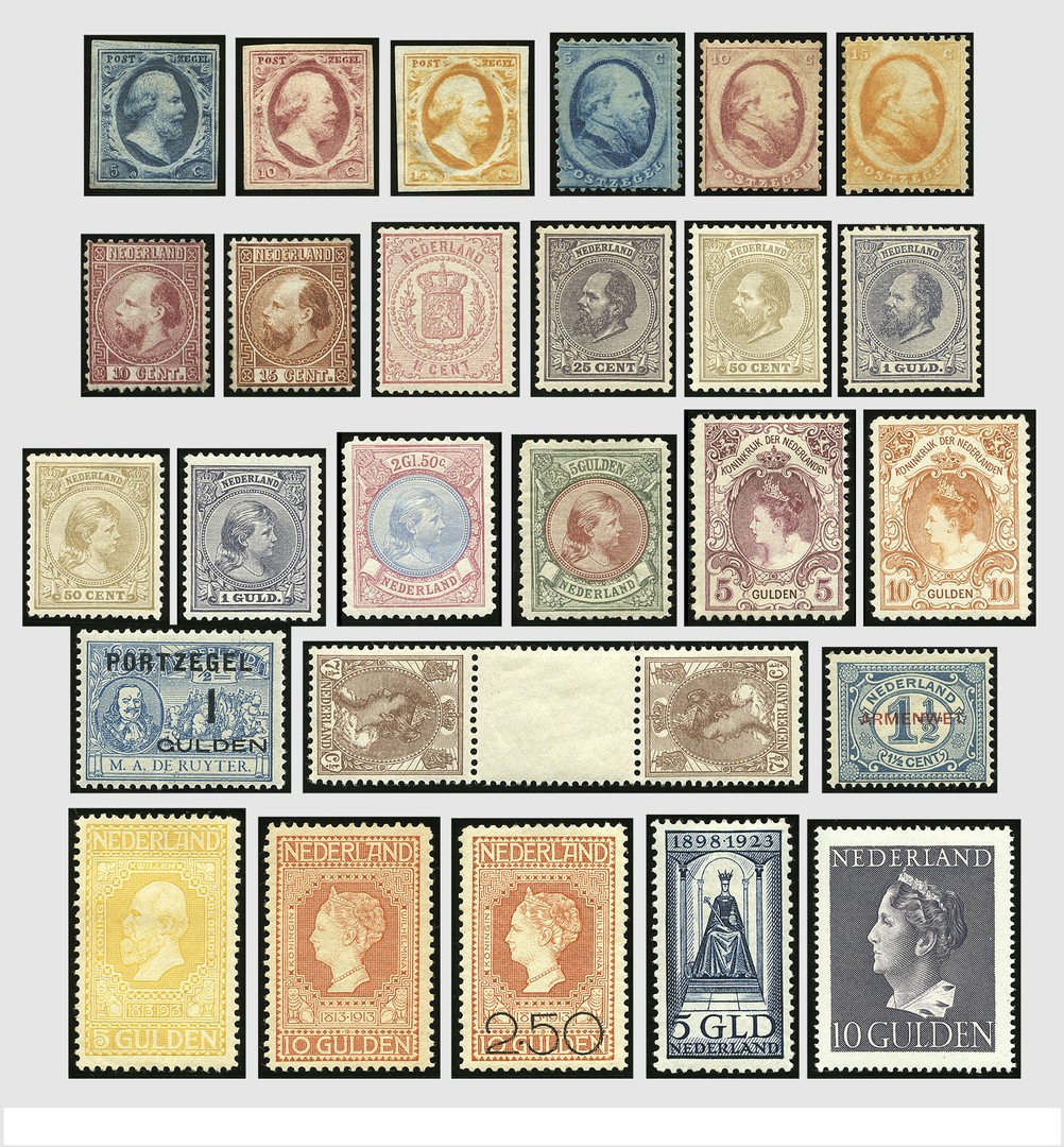 1852-1945 geheel ongebruikte verzameling in Davo album met talrijke betere nrs. en series, o.a. 1/3, 4/6, 7/9, 13/18, 19/28, 34/44, 45/48, 49, 77/80, 90/101, 104/05, 130/31, 163/65, 346/49(**), 61b/c, D1/8 etc. Bij de oudere emissies een enkel zegel met nieuwe gom, of zonder gom, maar over het algemeen een schitterende collectie in goede kwaliteit.