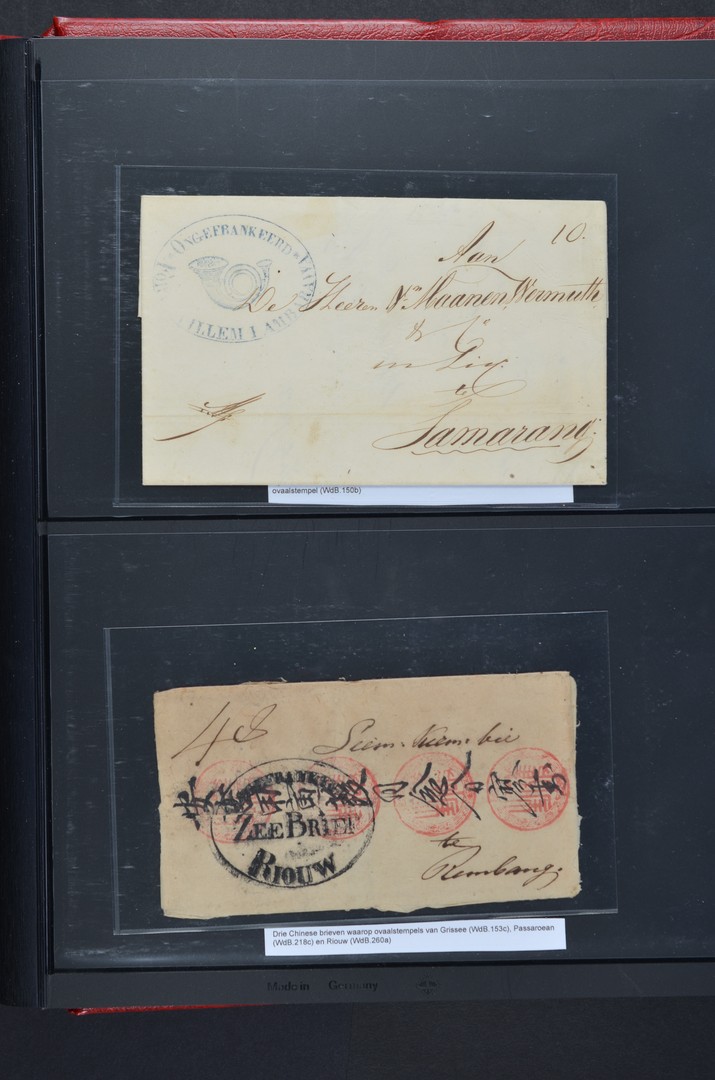 NED.- INDIË VOORFILATELIE. 43 Brieven/omslagen 1822-64 w.o. landmailstempels (1x rood, 3x blauw), India Paid by Batavia, en diverse postkantoorstempels in zwart, rood, blauw en blauwgroen