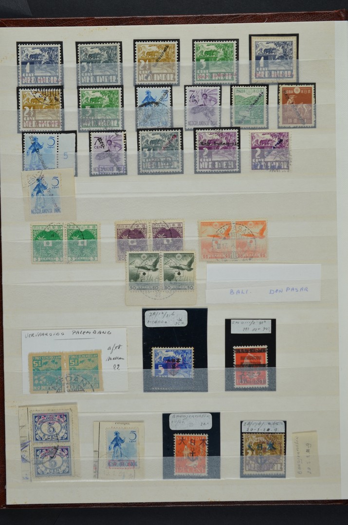 JAPANSE BEZETTING 1942-1949, speciaal-verzameling in insteekboek waarbij variëteiten, proeven, nooduitgifte Atjeh! alsmede 15 brieven/kaarten. Cwvi. € 21.500