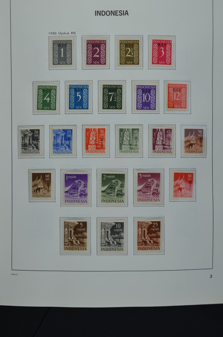INDONESIË 1949-2004, hoofdzakelijk postfrisse verzameling in 6 Davo albums en 1 ringband met o.a. Riau (cert.), apenblokken, siervellen, blokken, boekjes, "Back of the Book", etc. Leuke koop met hoge cat. waarde.