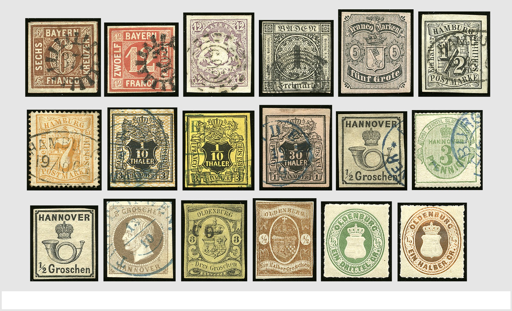 OUD DUITSE STATEN o/*, collectie in 2 Lindner albums in wisselende kwaliteit waarbij diverse goede nrs., en ook enkele paren en strippen van 3. Hoge cat.waarde.