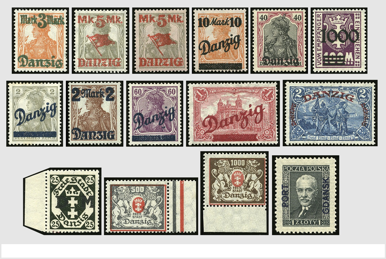 DANZIG 1920-1939 */**, uitgebreide verzameling in 2 Leuchtturm albums met vele typen, tandingen en kleurvariëteiten waarbij: AI/AIII **, 28II, 41III/46III, 47/49 (cert. Schüler), 86X **, 100xa, 144/45x, 237/239, D5y (cert. Schüler) D13I, PI **,(cert. Schüler) alsmede voorfilatelie en postwaardestukken waaronder betere ex. Mooie verzameling in zeer nette kwaliteit.
