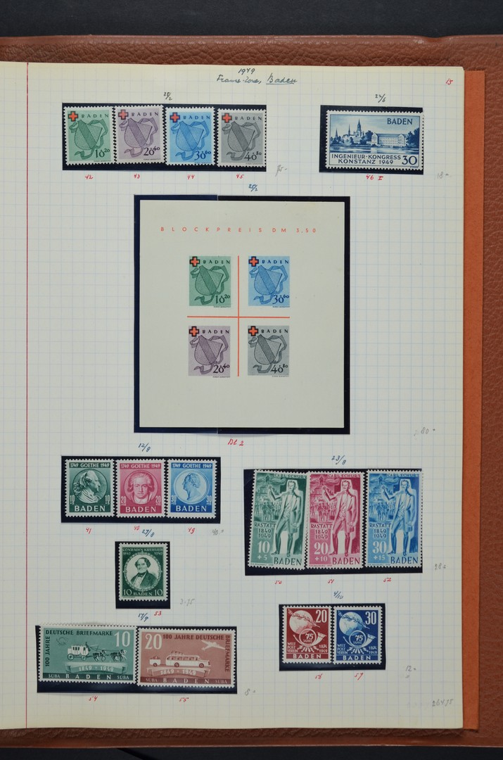 DUITSLAND, BIZONE-FRANSE ZONE en S.B.Z 1945-1949, meest ongebruikte verzameling in nette kwaliteit met veel beter materiaal. Onder andere: Franse Zone: alle Rode-kruisblokken, SBZ Goethe-blok, Bizone met band- en netopdrukken, etc. Een werkelijk prachtkavel!