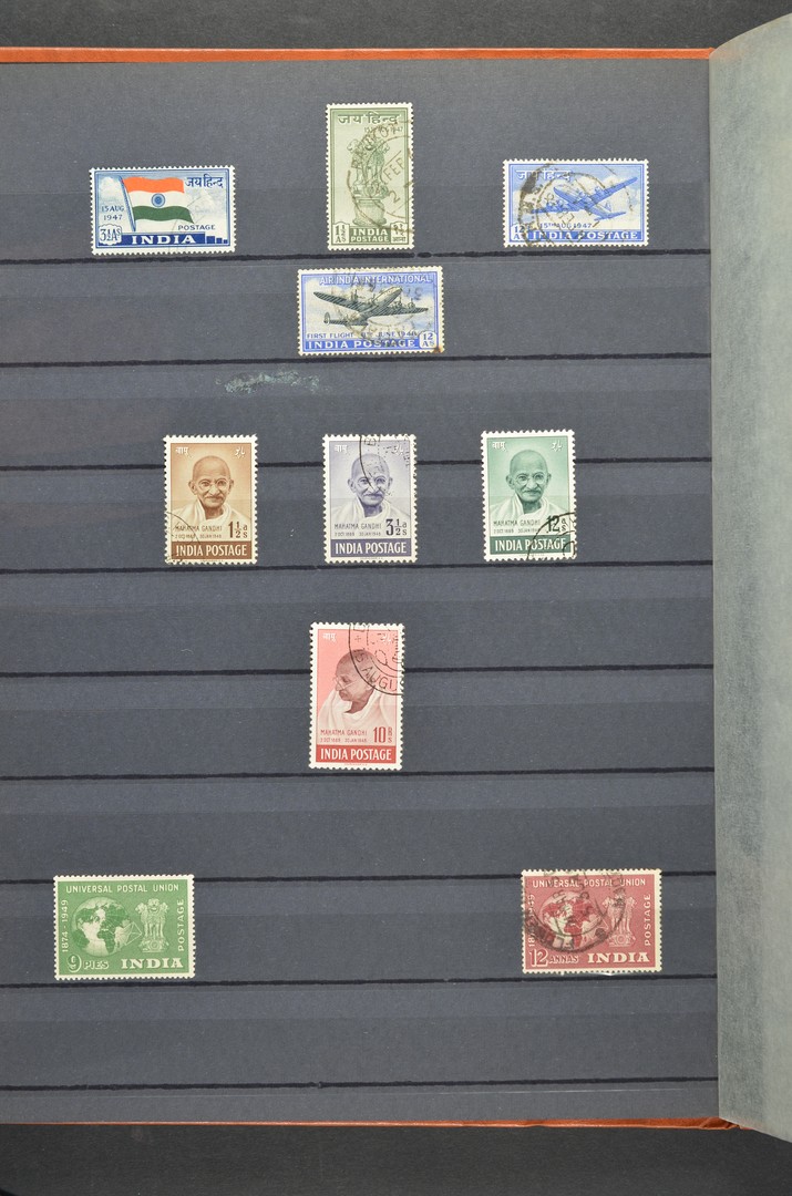 ENGELAND en KOLONIËN, verzameling o/*/** met doubletten in 2 insteekboeken wb. o.a. India met de 10 R. Ghandi.