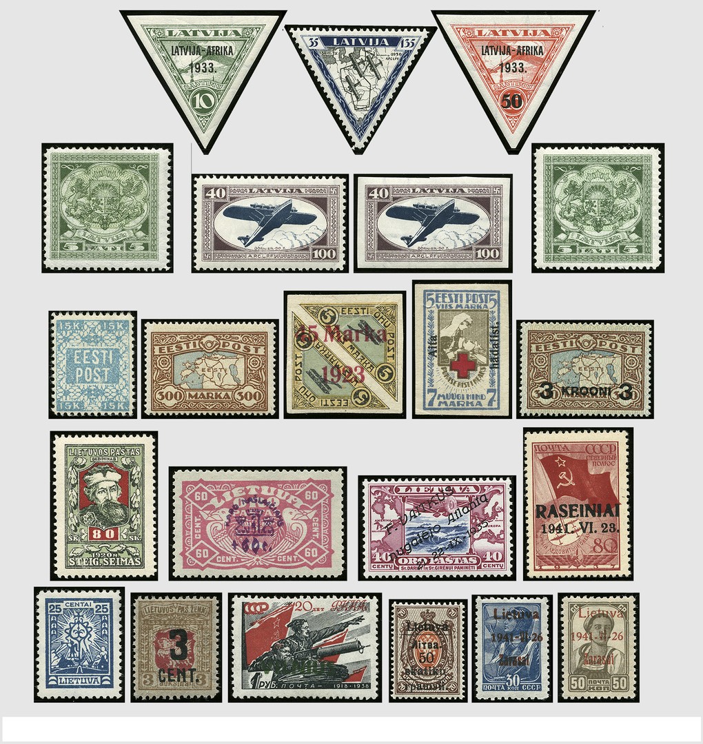 ESTLAND, LETTLAND, LITOUWEN 1918-1992 o/*/**, uitgebreide verzameling met vele typen en tandingen in 3 Leuchtturm albums en mapje waarbij o.a. Estland 2A, 46/7 A+B, 54, 89, Lettland 112/3, 219y, 220/24y, 227 A+B, 228/31 A+B, Litouwen 78I/83I, 138/175, 215, 239y en 404. Zuid-Litouwen 2/9, Wilna 17, 18, Rossingen 8, Zargad 2/6b, etc. Prachtkoop met een zeer hoge cataloguswaarde!