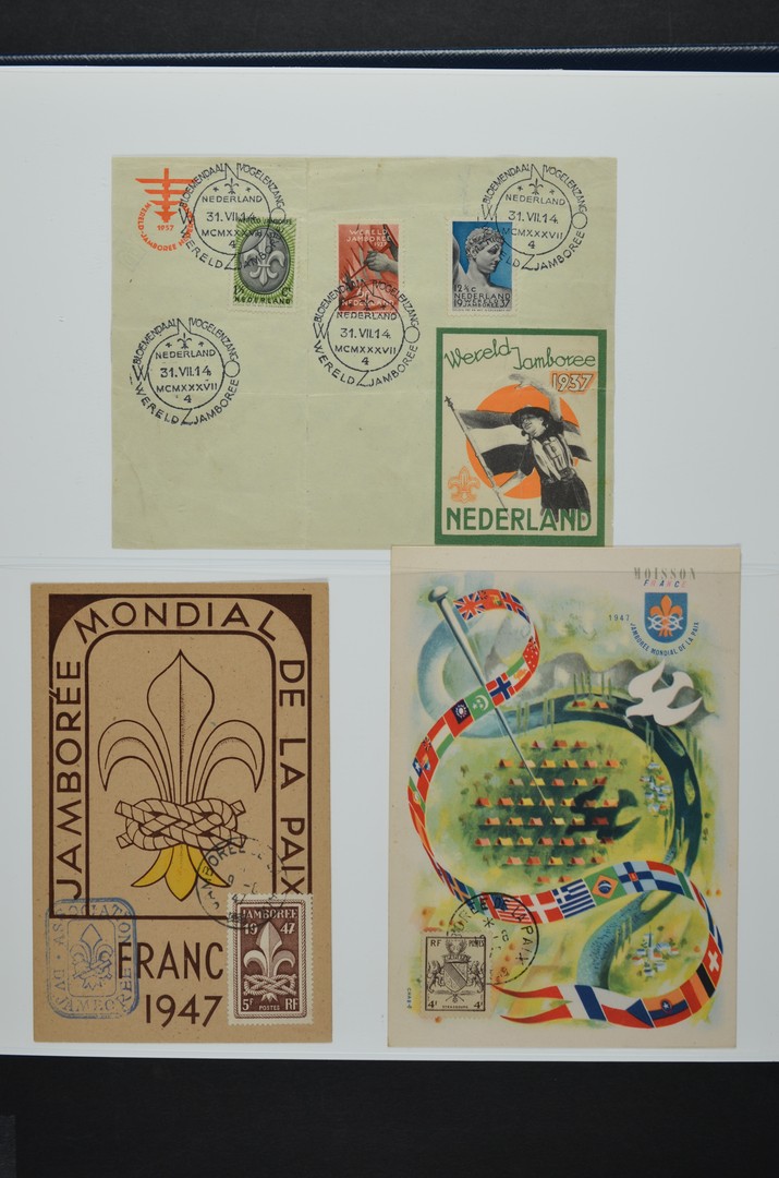 MOTIEF Scouting, verzameling brieven, FDC's/ penningen, in 2 Lindner albums en mapje
