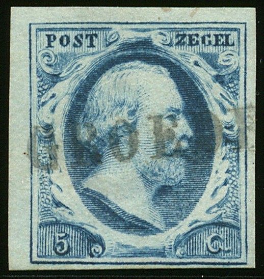GROEDE (EY.250) op 5 cent donkerblauw nr. 1b, plaat I. Prachtex. (onderrand iets smal) met complete afst. Ex van Dieten