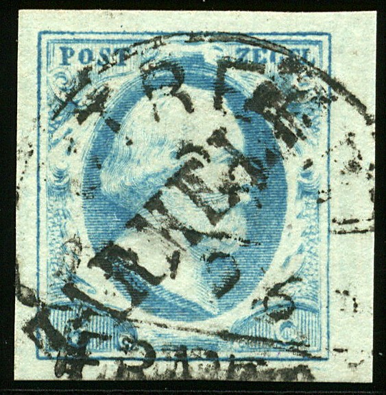 HARMELEN (EY.125) op 5 cent lichtblauw. Breed gerand pracht randstuk met volledige afdruk en tevens Utrecht C. Ex Clifford Jones