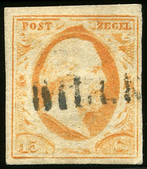 HILLEGOM (EY.250) op 15 cent oranjegeel. Prachtex. met groot deel afst.