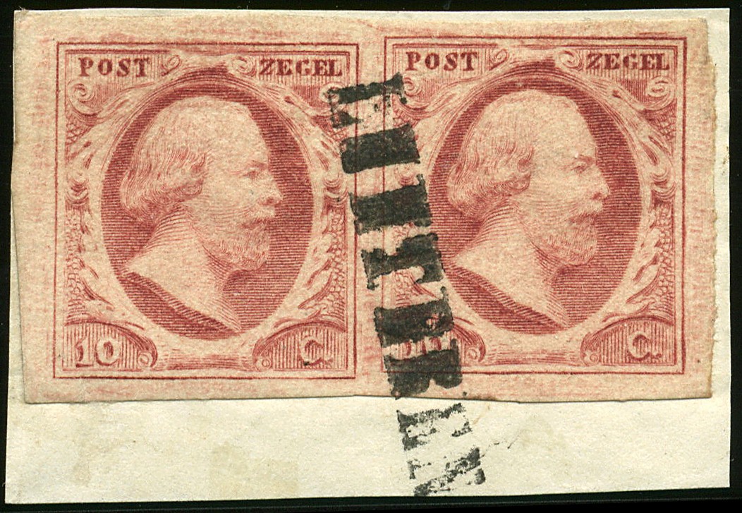 LUNTEREN (EY.250) op 10 cent karmijn. Breed gerand prachtpaar op briefstukje waarop volledige afst. Zeldzaam in deze kwaliteit! Ex Hammerschmidt, Klink, Berghuijs en in veiling 520, k.899