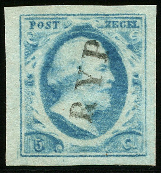 RYP (EY.RR) op 5 cent helderblauw nr. 1l, plaat IV. Superbe kwaliteit en uitermate zeldzaam stempel! Ex van Kimmenade