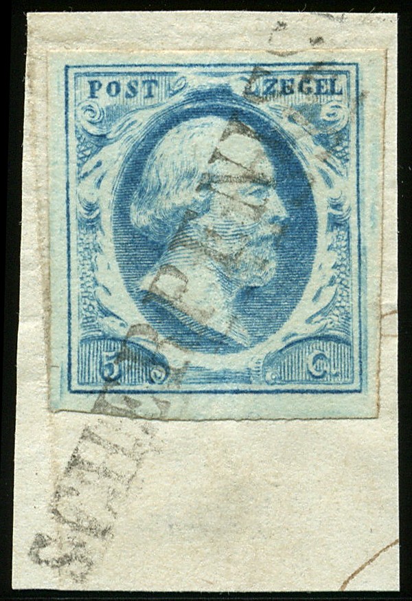 SCHERPENISSE (EY.R) op 5 cent lichtblauw nr. 1k, plaat III pos. 30. Prachtex. op briefstukje waarop volledige afst.