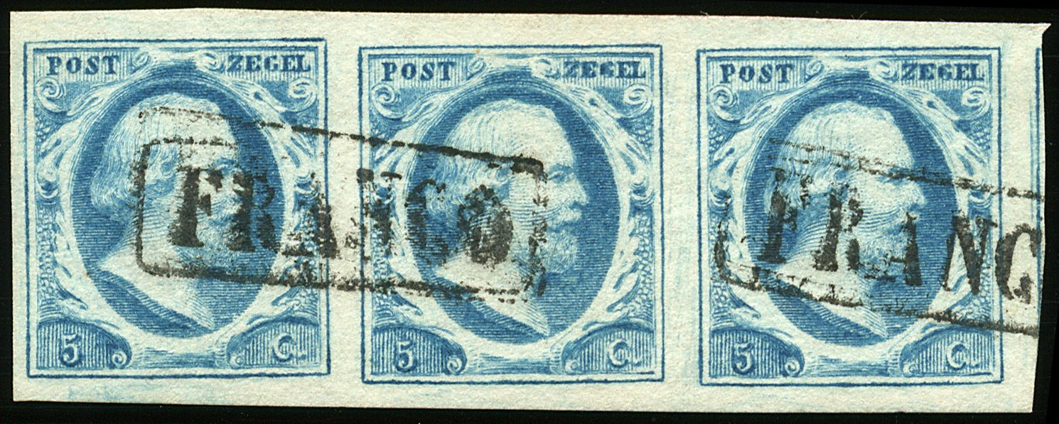 1q-Pl.VI-7/9, Breed gerande prachtstrip van drie op dik papier, zeldzaam!