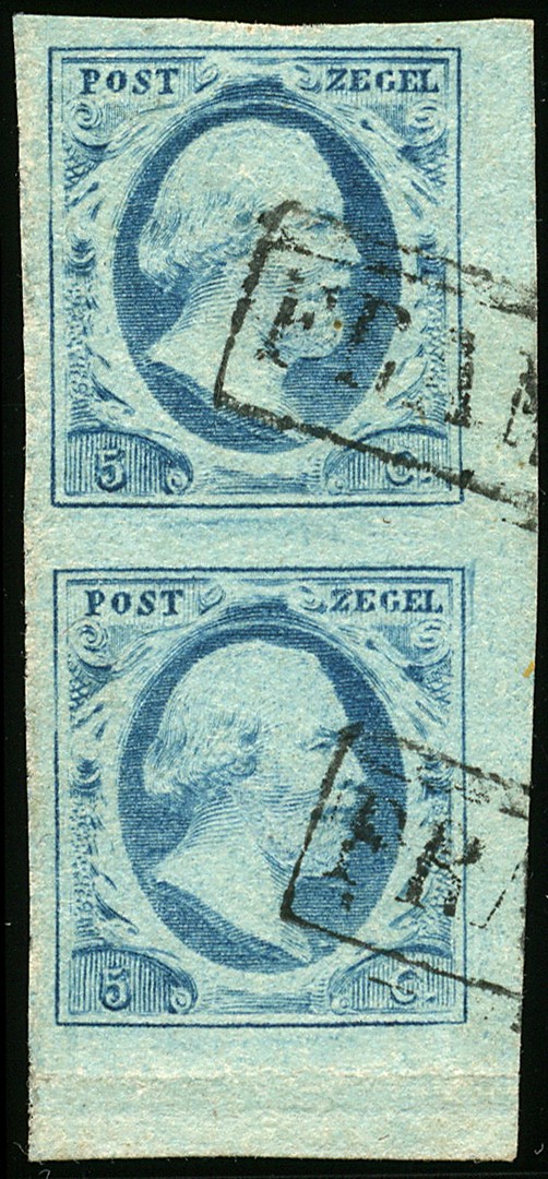 1r-Pl.VI-70/75. Zeer breed gerand verticaal luxe hoekpaar met watermerklijn