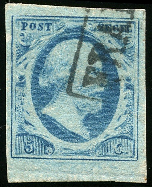 1r-Pl.VI-98. Pracht randstuk op dun papier met watermerklijn