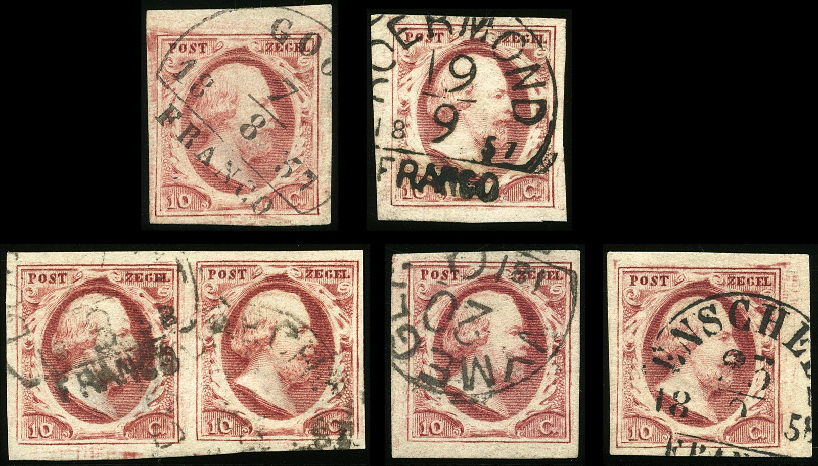 2g, 10 Cent plaat IV, 6 losse zegels en 3 paren uit het linker boven kwadrant van een plaatreconstructie, posities 2, 3/4, 6, 7, 12/13, 17, 19, 20 en 24/25. Prachtexemplaren met enkele randstukken in uitgezochte kwaliteit. € 570+