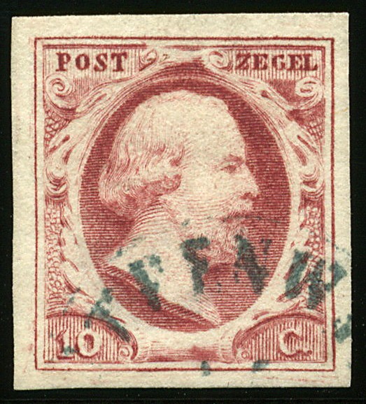 2k-Pl.V-39. Prachtex. met 'streepje op de wang' en licht in blauw gestempeld fragment Steenwyk
