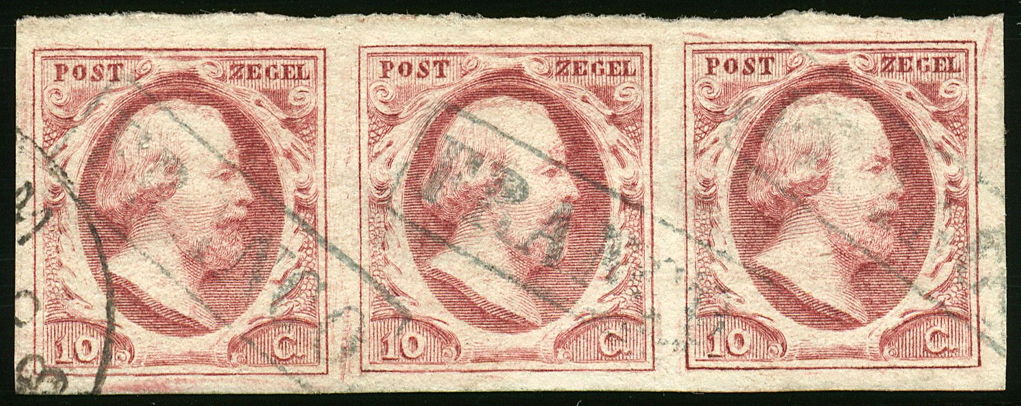 2n-Pl.VIII-43/45. Breed gerande, licht gestempelde prachtstrip van drie. Ex Van Hussen