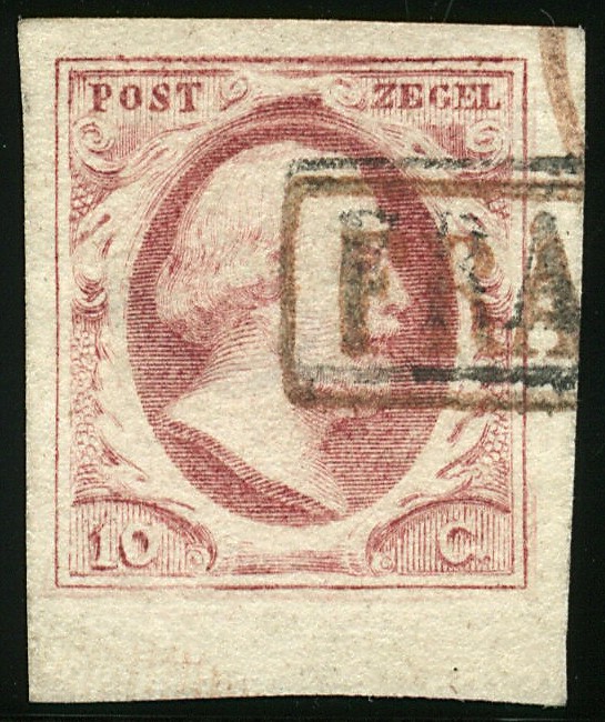2o-Pl.IX-50. Pracht hoekstuk met rode, waaroverheen zwarte Franco-afstempeling