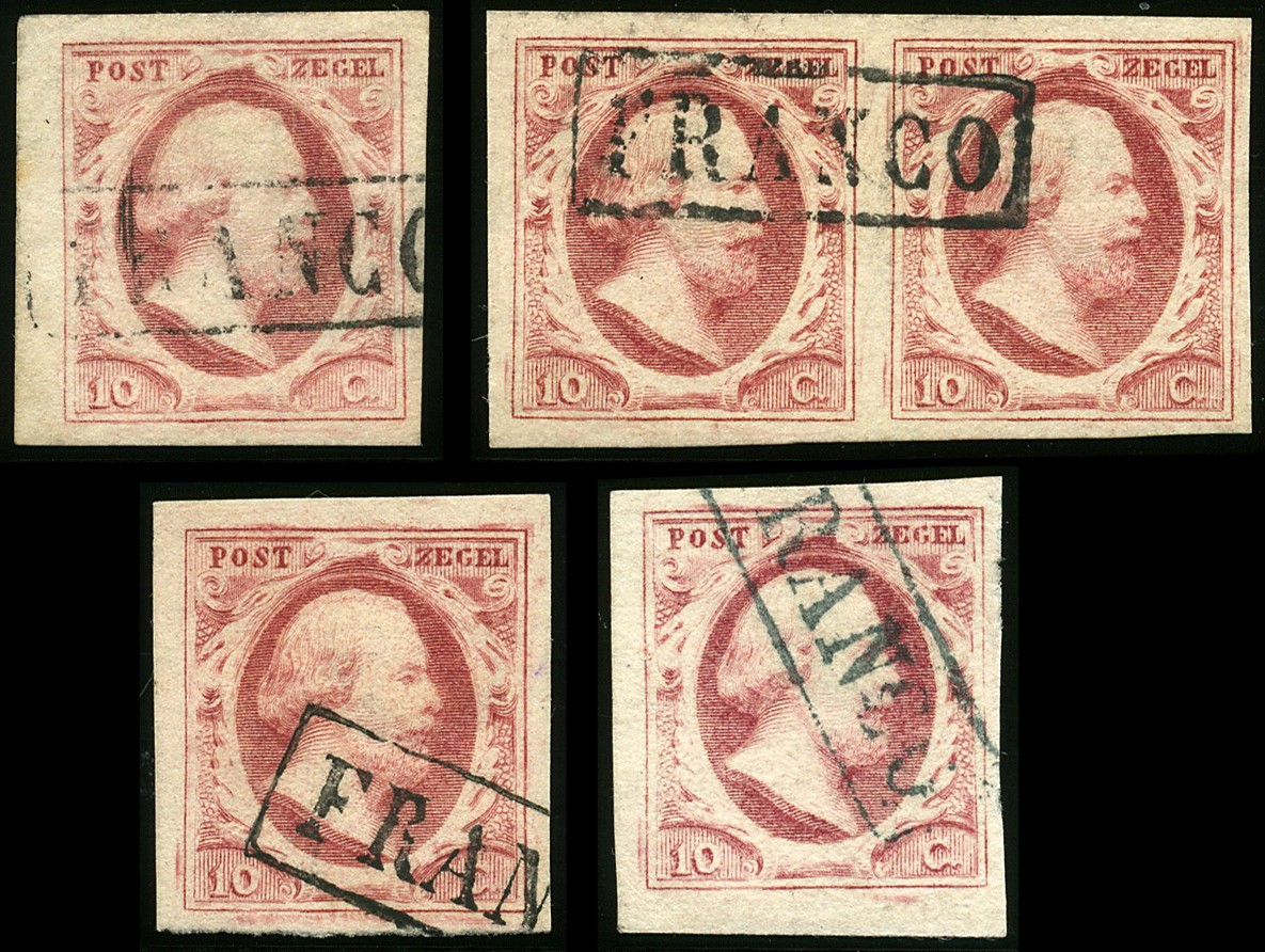 2p, 10 Cent plaat X op dik papier, 10 losse zegels en 1 paar uit het linker boven kwadrant van een plaatreconstructie, posities 9/10, 11, 13, 14, 16, 17, 18, 19, 20(?), 21 en 23. Prachtexemplaren met enkele randstukken in uitgezochte kwaliteit. € 539