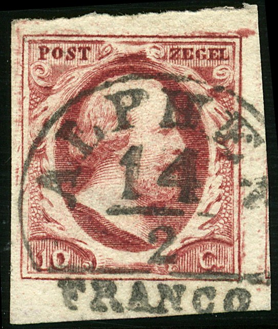 ALPHEN A (EY.100) op 10 cent nr. 2g-Pl.IV-49. Pracht randstuk met ideale afst.