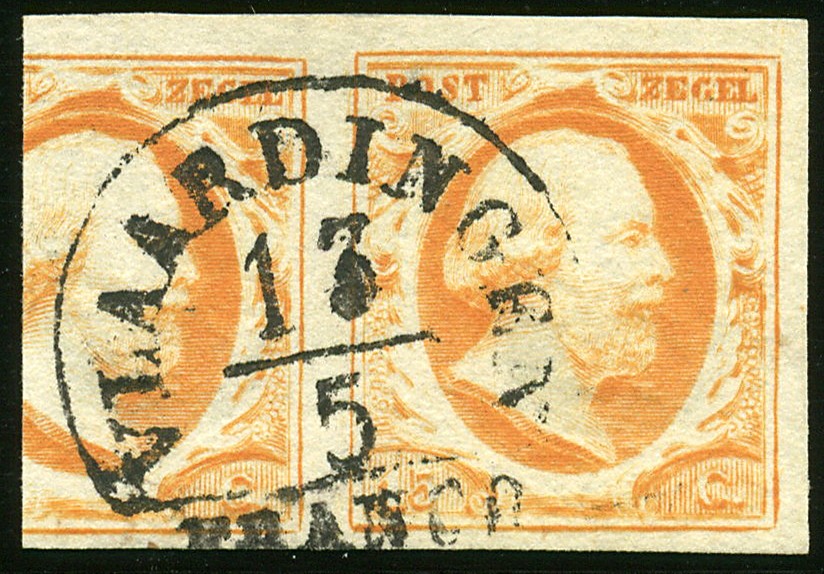 VLAARDINGEN A (EY.200) op 15 cent nr. 3b, pos. 12. Breed gerand prachtex. met zeer groot deel buurzegel, met in het midden een luxe afst.