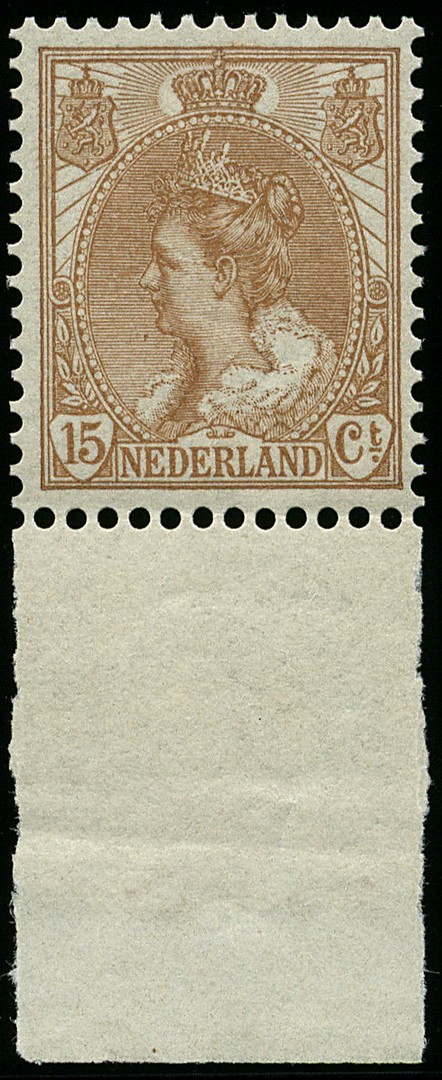 64, 15 cent bruin, postfris pracht onderrandstuk met cert. NVPH (2017) € 725