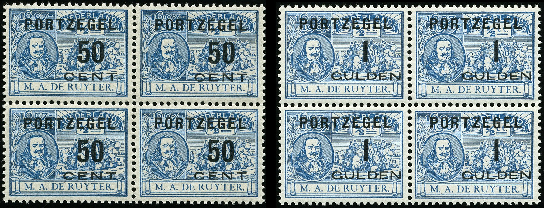 31/43, De Ruijter ½ cent t/m 1 Gulden, complete serie in luxe postfrisse blokken van vier € 5600